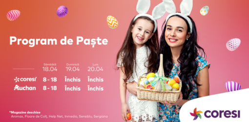 PROGRAM SPECIAL DE PAȘTE LA CORESIProgram special de Paște la Coresi. Sâmbătă, 18 aprilie 2020, programul Auchan va fi mai scurt. Hipermarketul se va deschide…