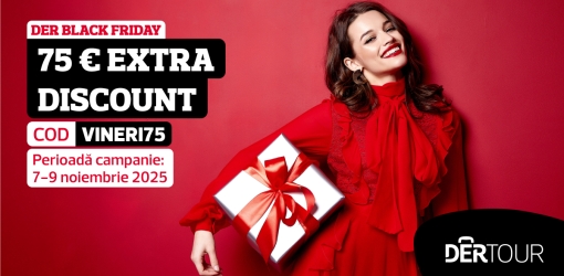 Black Friday la Dertour cu reduceri de vacanță! #aventuri #black friday #calatorie #concediu #coresi #egipt #experiente #extra discount #laponia #noiembrie 2025 #oferte #preturi incredibile #promotii #reduceri #reduceri gigant #toamna 2025 #turcia #turism #vacanta #vacanta de visBlack Friday la DERTOUR îți aduce super reduceri la vacanțe și un extra discount de 75 de euro. Între 7…