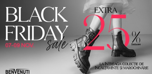 Benvenuti te invită la Black Friday cu extra 25% reducere! #25% reducere #benvenuti #Benvenuti Coresi #black friday #botine #cizme #coresi #curele #discounturi #fashion #genti #incaltaminte #marochinarie #noiembrie 2025 #oferte #pantofi #portfarduri #poșete #promotii #reduceri #shopping #toamna 2025Black Friday la Benvenuti #Coresi aduce stilul mai aproape de tine! Doar între 7 și 9 noiembrie, ai extra 25%…