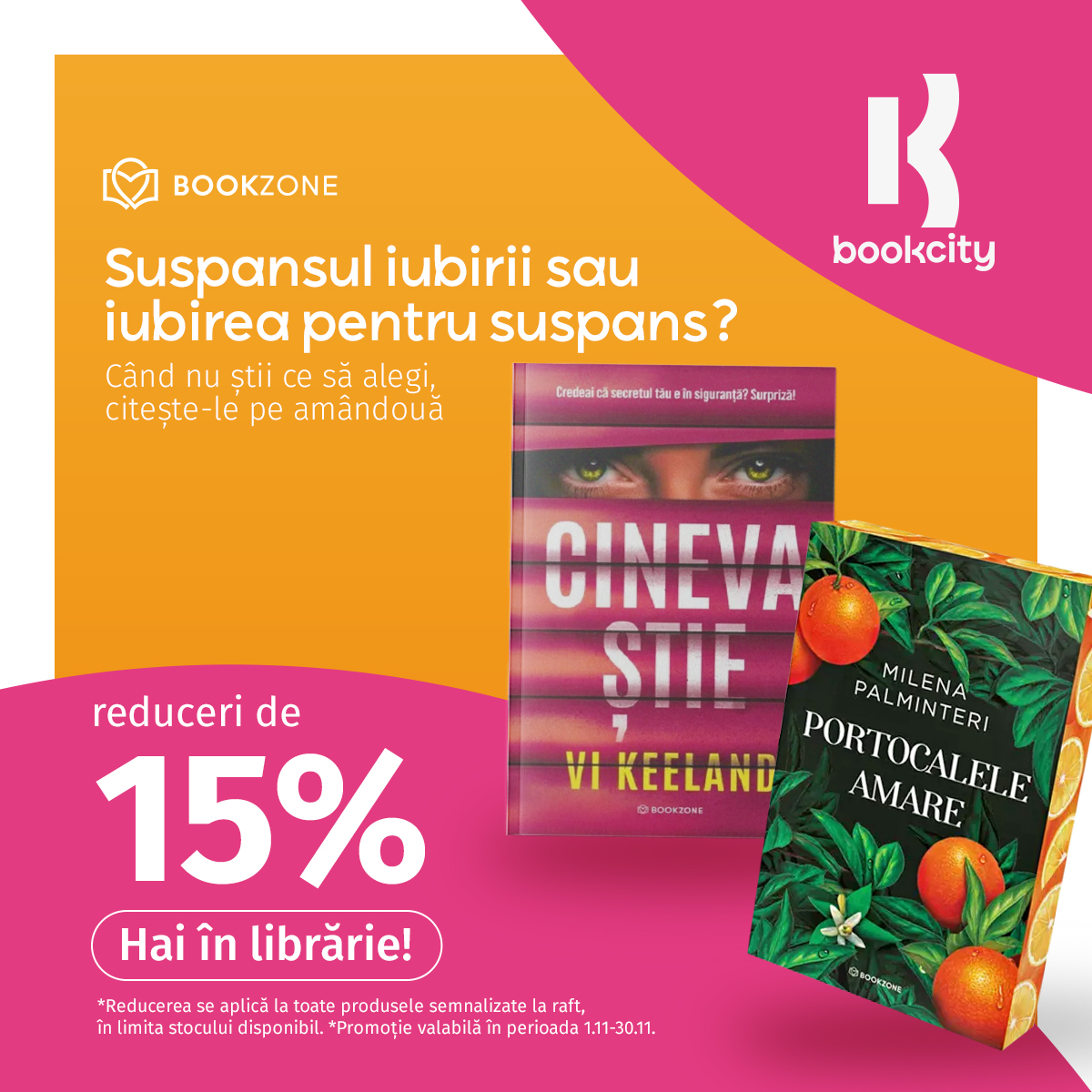 Toată luna noiembrie, ai 15% reducere la titlurile Bookzone – povești intense, pline de emoție și mister.