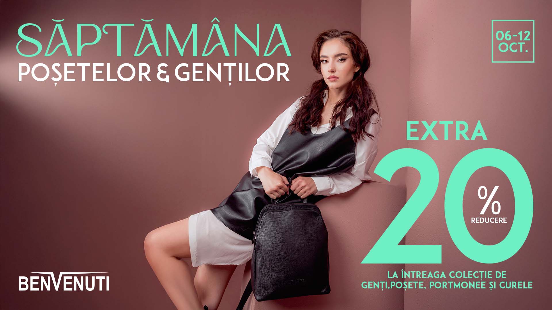 Între 6 – 12 octombrie, te așteaptă extra 20% reducere la toate gențile, poșetele, plicurile, curelele și portofelele din colecție – inclusiv cele deja reduse!