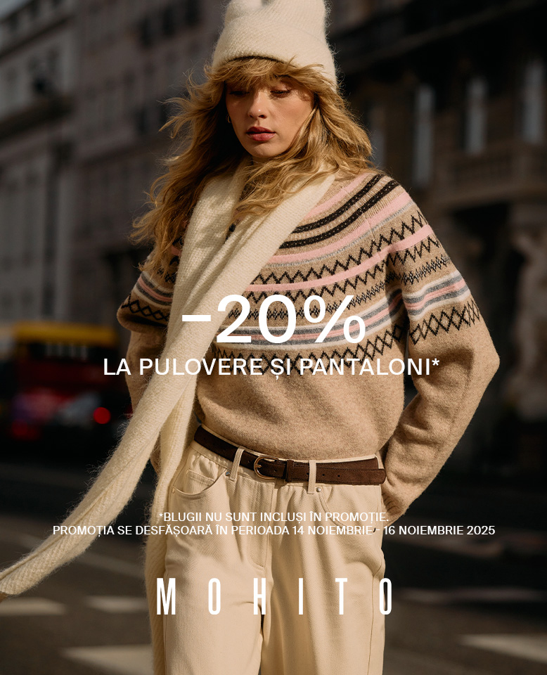 Între 14 – 16 noiembrie, ai -20% reducere la pulovere și pantaloni, exact ce ai nevoie pentru ținute cozy, elegante și super ușor de asortat.
